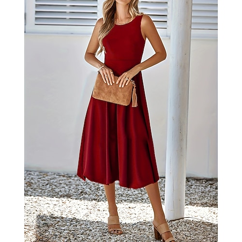 Per donna Abito Midi Abito nero Vestito Casual Elegante Moda Moderno Quotidiano All'aperto Uscire Vestibilità regolare Semplice Senza Maniche Girocollo Blu Nero Rosa Verde militare Estate Primavera