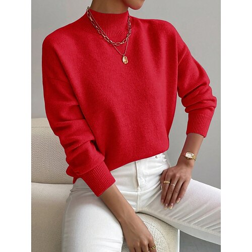 Per donna Felpa Maglione Elegante Vintage Moda Tinta unica A Coste Dolcevita Lavorato a maglia Manica Lunga Top Regolari Maglia Scuola All'aperto Casa Rosa Verde militare Primavera Autunno