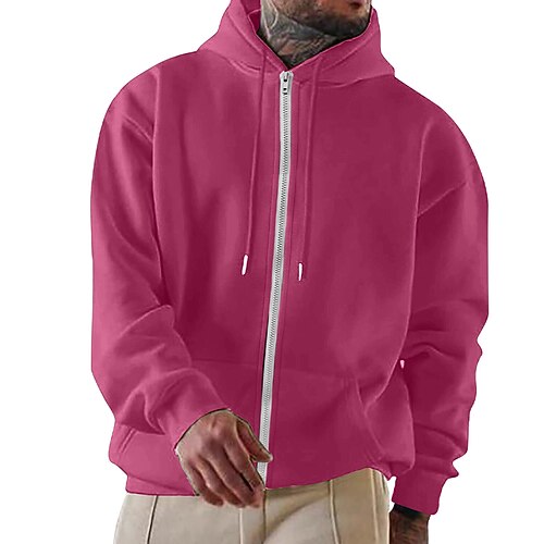 Per uomo Felpa con cappuccio Felpa con cappuccio a zip intera Felpa con cappuccio in pile Rosso bordeaux Nero Verde chiaro Rosa Verde militare Con Cappuccio Semplice Cerniera Sport Outdoor Casuale