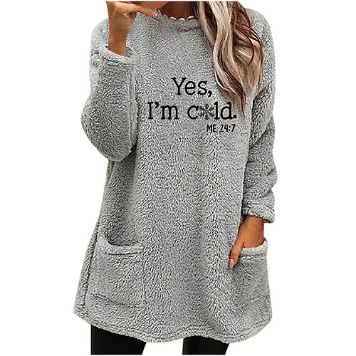 Per donna Felpa Pullover Lettera Casual Manica Lunga Girocollo Top lunghi Streetwear Abbigliamento Quotidiano Tasca Stampato Blu Nero Bianco Rosa Verde militare Autunno Inverno