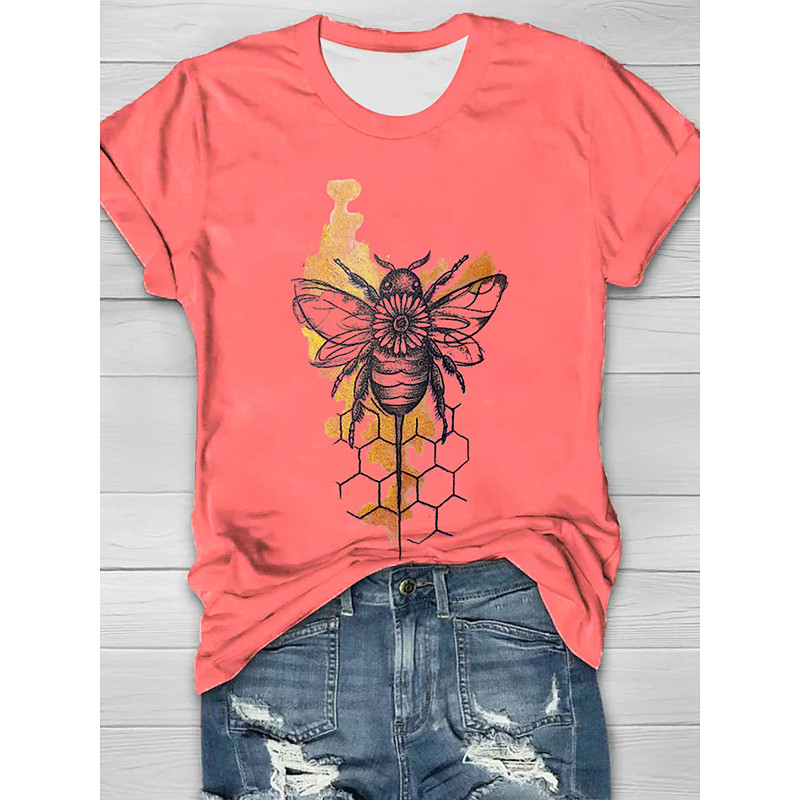 Women's T Shirt Graphic Animal Vintage Stylish Classic Short Sleeve Crew Neck Regular Tops Daily Weekend Print Sage Green White Pink Dusty Rose Orange Summer