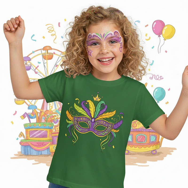 100% Cotton Mardi Gras 2026 Carnival Kids Girls' Blue Black White Graphic Mask T shirt Tee Crew Neck Short Sleeve Vacation Sports Outdoor Dailywear Active Vacation Casual Printing Spring All Seasons