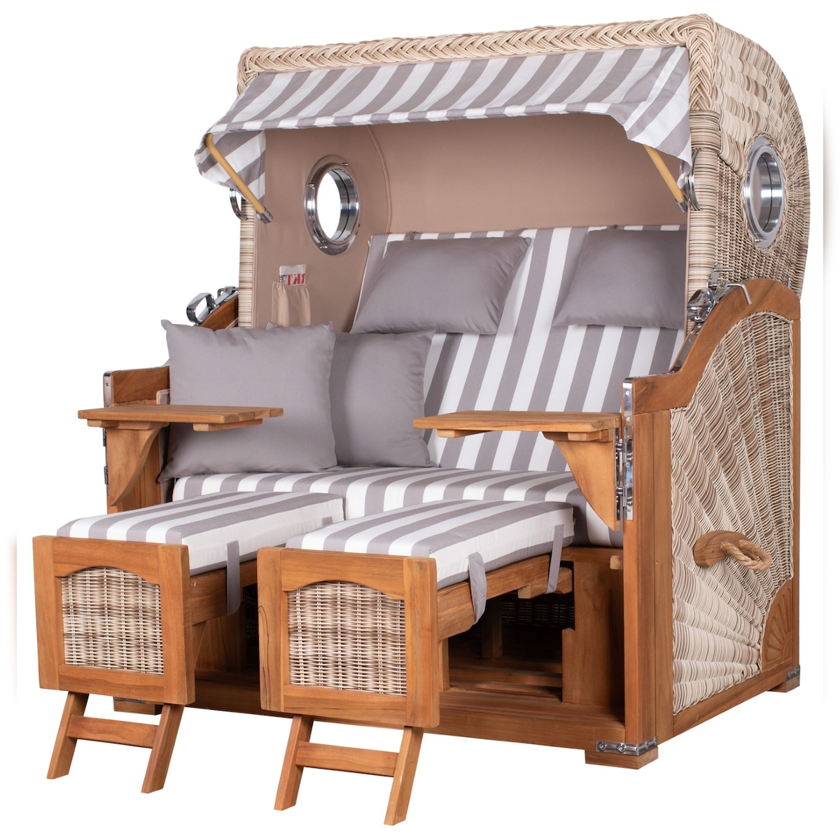 Mr. Deko Strandkorb - bene living - Ammersee Grande XL Teak Bullauge - PE shell - Modell 513 - 2,5-Sitzer inkl. Liftersystem
