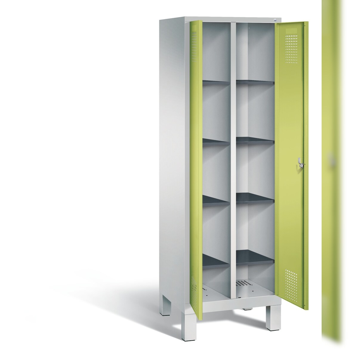 C+P Doppel-Spind Classic PLUS Kunststoff untergebaute Bank, 4 Abteile, Trennwand, HxBxT 212x120x82cm, Zylinderschloss, Hellgrau/Clowngrün von PROREGAL