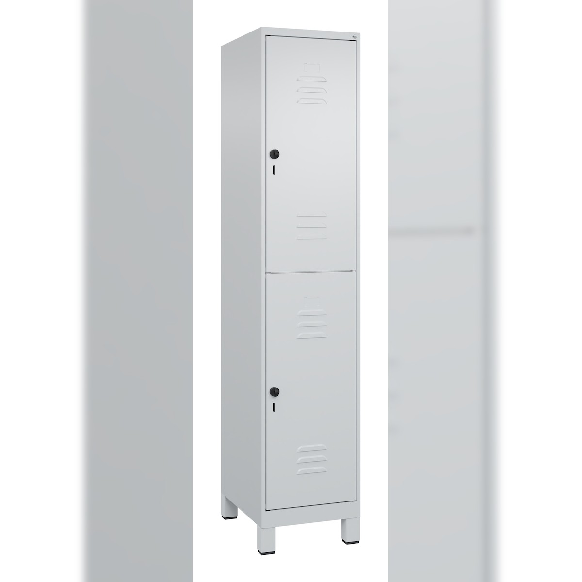 C+P Spind Classic PLUS, Sockel, 2 Abteile, HxBxT 195x60x50cm, Zylinderschloss, Hellgrau/Fernblau von PROREGAL