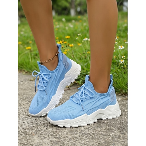 Scarpe da passeggio da donna in maglia gialla: scarpe sportive leggere e traspiranti, ideali per camminare, andare in palestra, viaggiare e per tutti i giorni.