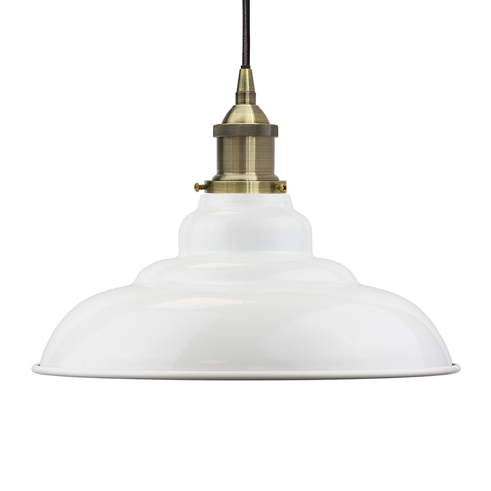 Soho Lighting White St Edmund's Painted Pendant Light with Antique Copper Lamp Holder and Brown Twisted Cable