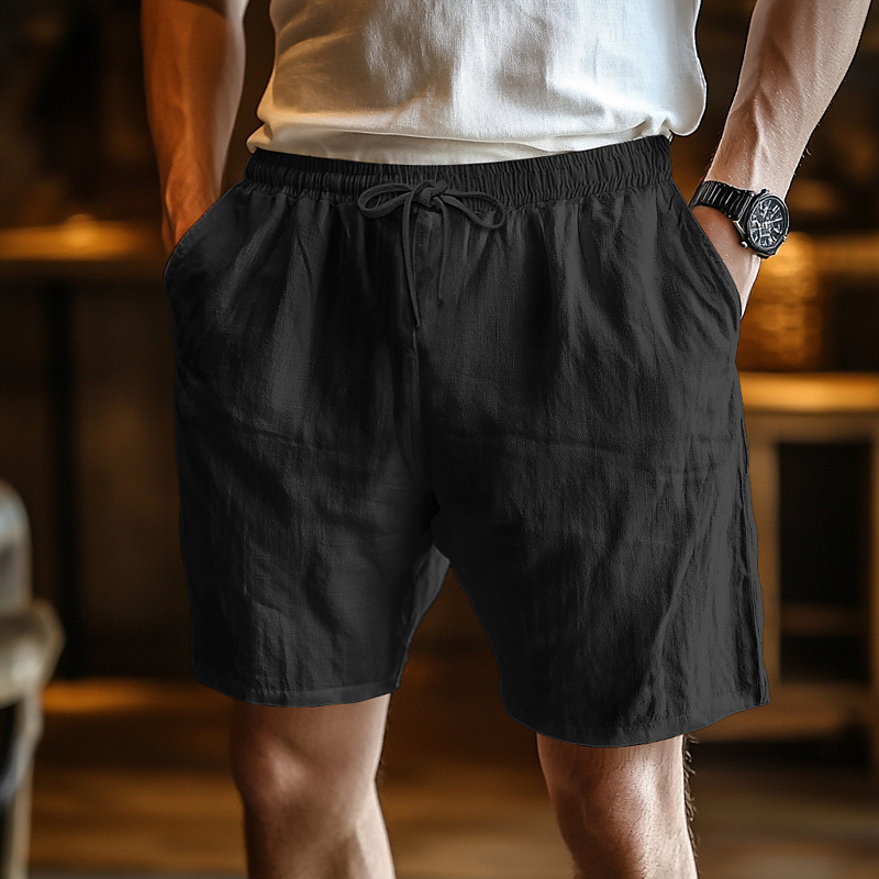 Men's Shorts Summer Shorts Beach Shorts Baggy Shorts Elastic Waist Drawstring Straight Leg Plain Comfort Breathable Knee Length Outdoor Casual Daily Vacation Ethnic Style Black White Inelastic