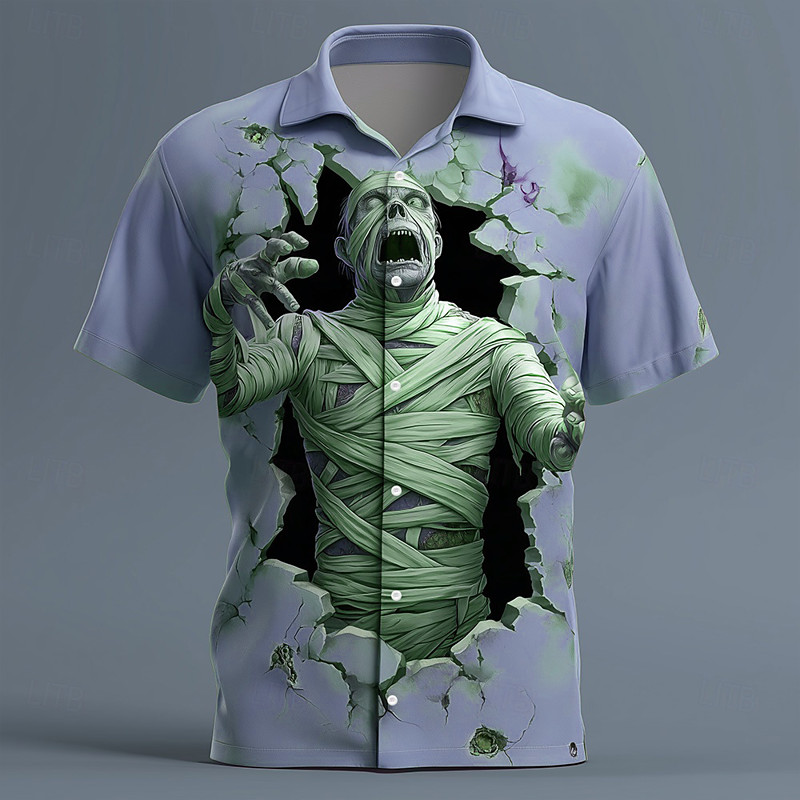 Men's Zombies Mummy Cracked Wall Shirt Button Up Shirt Short Sleeve Dark Gothic Style Holiday Streetwear Summer Spring Turndown 3D Print Collared Shirts Light Green Pink Purple Green Khaki
