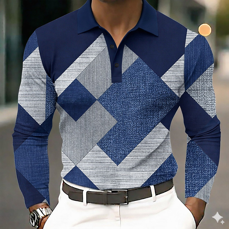 Men's Color Block Geometic Polo Shirts Long Sleeve Polo Shirts Lapel Business Casual Outdoor Athleisure Daily Wear 3D Print Buttons Spring Fall Blue Navy Blue Purple