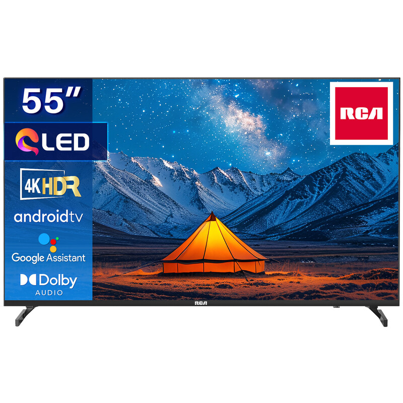 RCA Android Smart TV | QLED 4K UHD | 55 Zoll/140 cm | Rahmenlos Design | Tripple Tuner DVB-T/T2/S/S2/C | HDMI x3, USB x2, CI+ | Sprachsteuerung & Streaming-Apps | Montiert in Eindhoven | RAQ55UN1