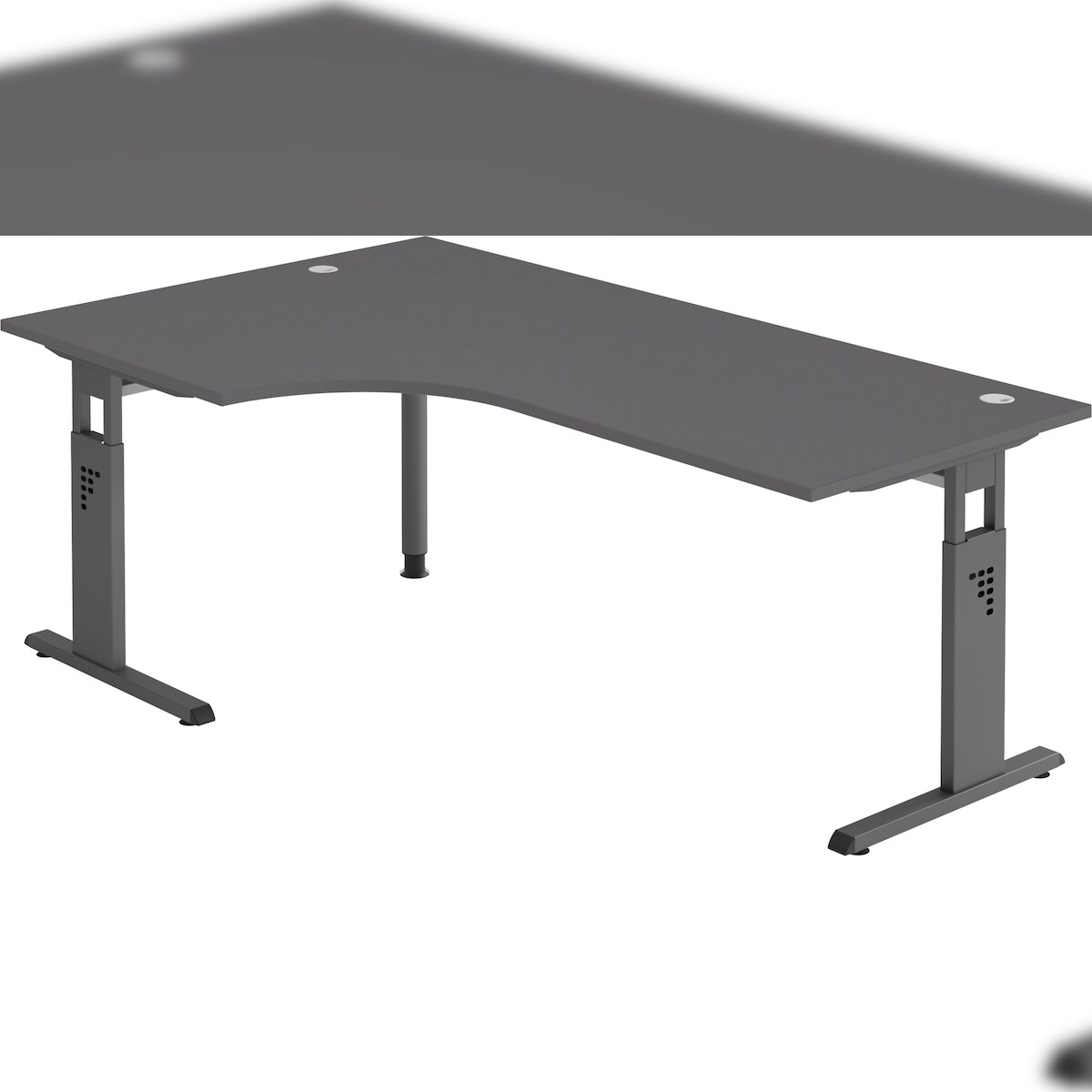 bümö höhenverstellbarer Eckschreibtisch O-Serie 200x120 cm in Graphit, Gestell in Graphit - Schreibtisch L Form, großer Tisch für's Büro,