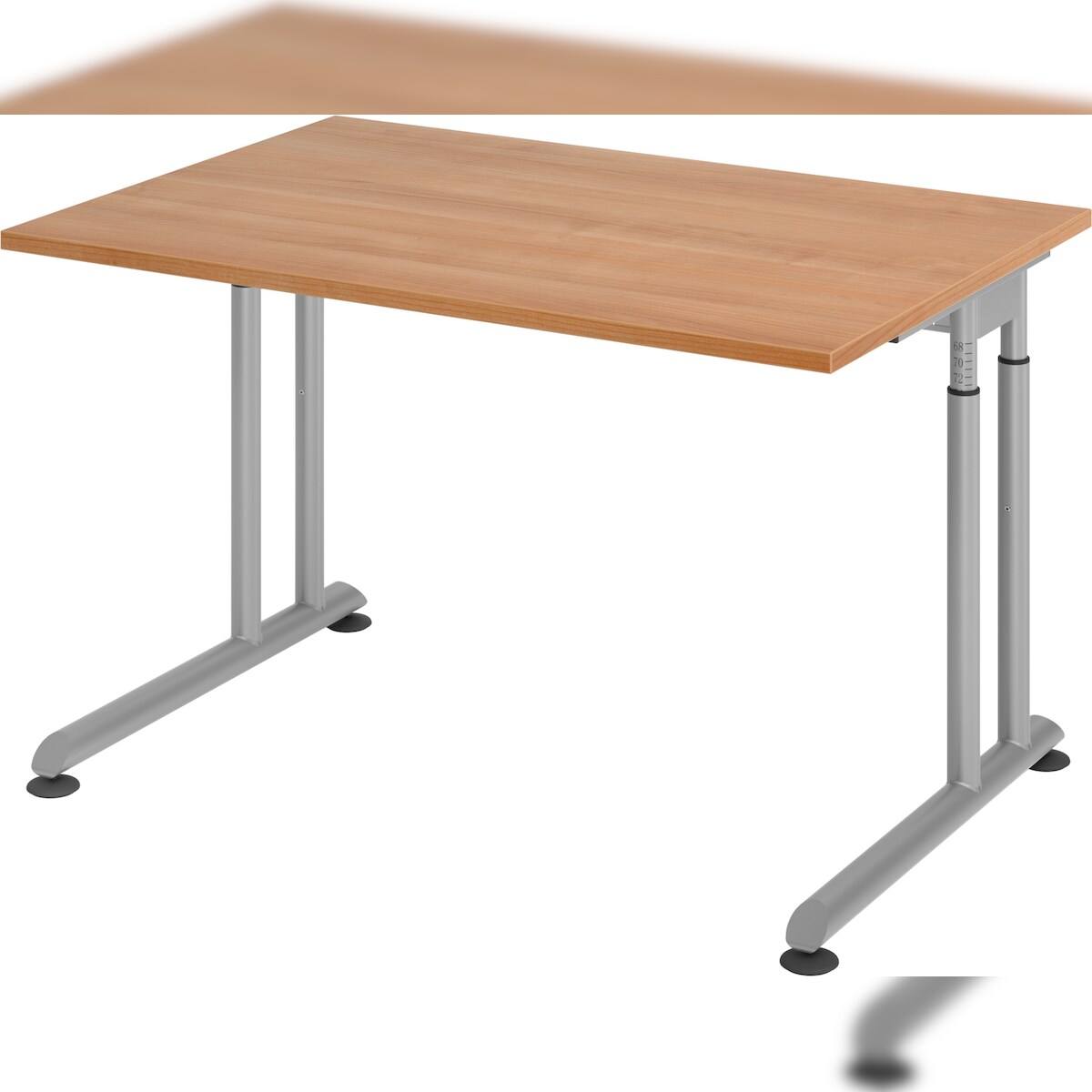 bümö höhenverstellbarer Schreibtisch Z-Serie 120x80 cm in Nussbaum, Gestell in Silber - PC Tisch klein für's Büro manuell höhenverstellbar,