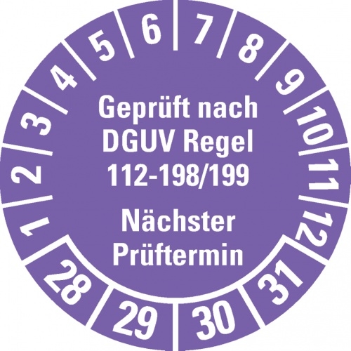 Dreifke® Prüfplakette Geprüft nach DGUV 112-198/199 28-31, violett, Ø 30mm, 18 Stk.