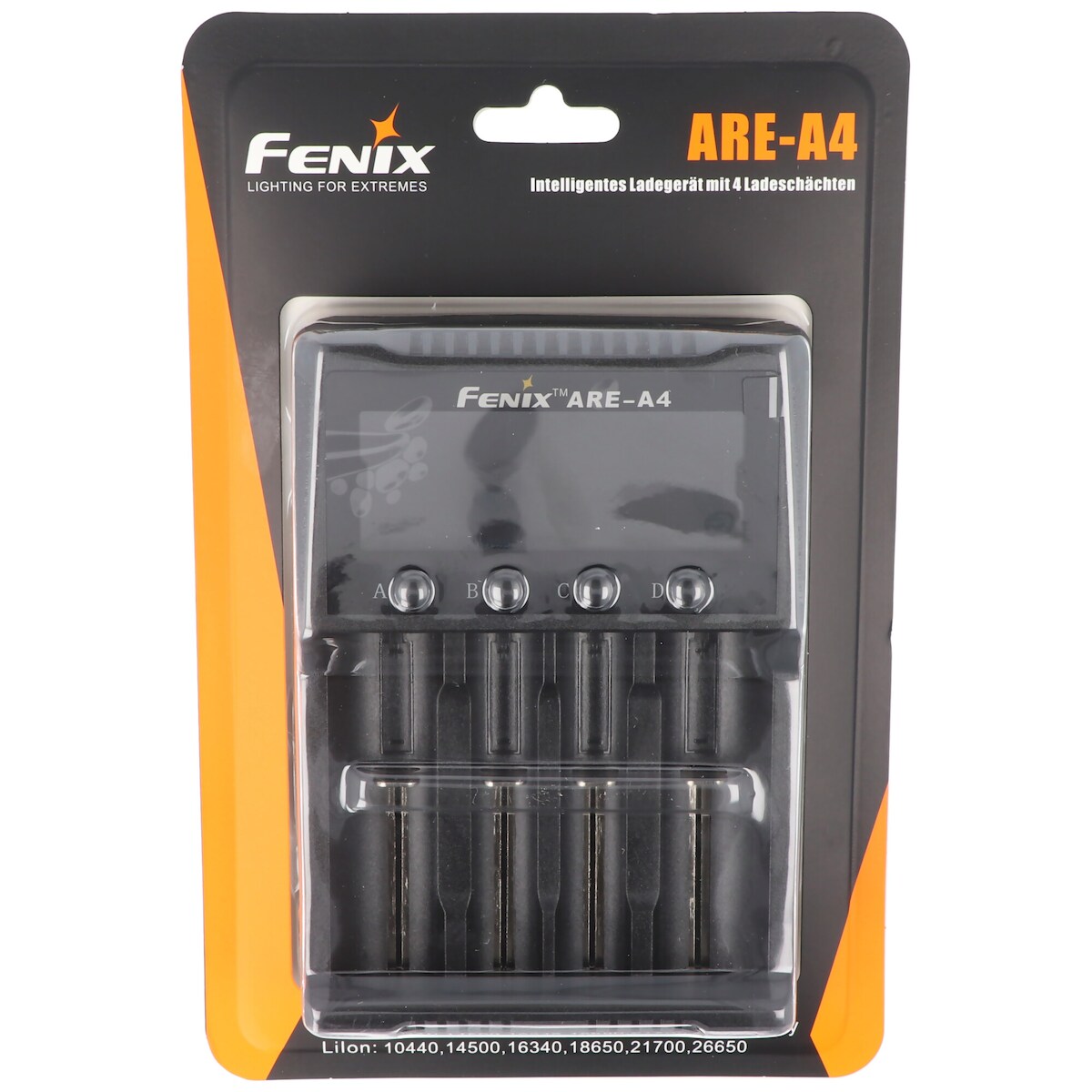 Fenix ARE-A4 Ladegerät für Li-ion 18650, 21700, AA, AAA, C, 26650 lädt bis max. 76mm Länge