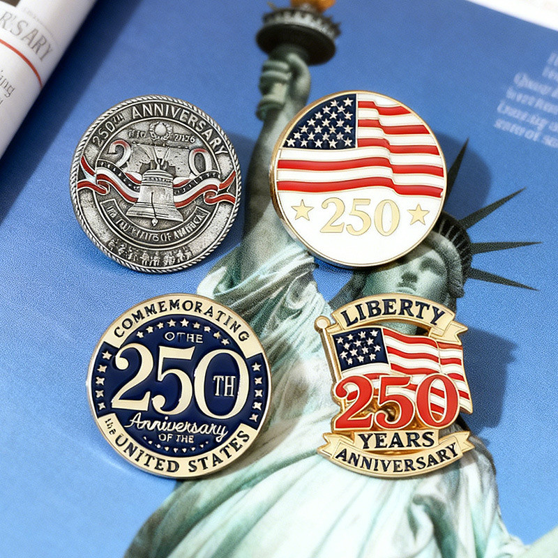 4pcs U.S. 250th Anniversary Commemorative Brooch Set, American Independence 250th Anniversary Patriotic Lapel Pins, Fourth of July Memorial Badge Souvenir Honor Collectible