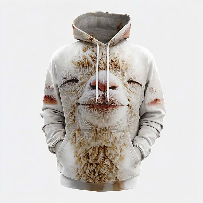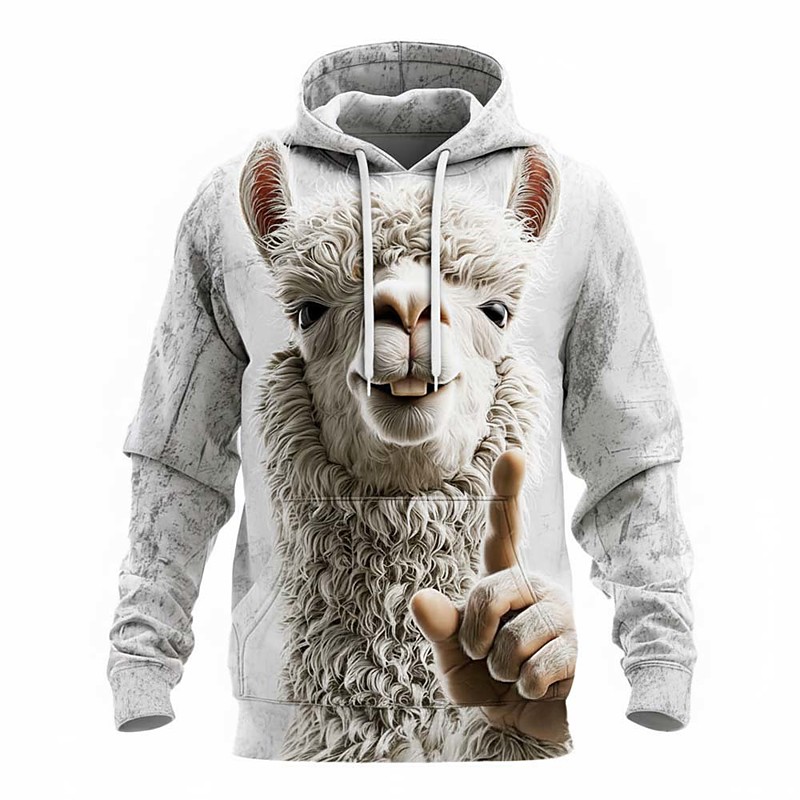 Men's 3D Print Funny Alpaca Hoodie Sweatshirt 3D Fantasy Long Sleeve Crew Neck Gift Club Streetwear White 1 White White 2 White 3 Drawstring Fall Winter Designer S M L XL XXL XXXL