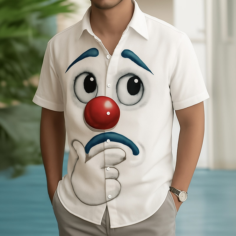 Men's Joker Clown Smile Face Shirt Button Up Shirt Short Sleeve Funny Outdoor Holiday Summer Spring Turndown 3D Print Collared Shirts White 1 White White 2 White 3 White 4