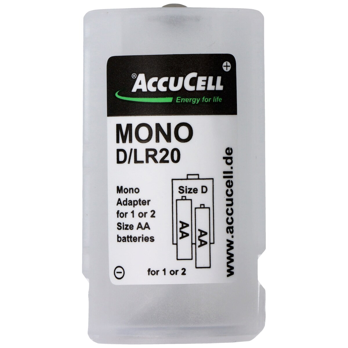 AccuCell Universal Mono D Adapter für 1 oder 2 Mignon AA Akku oder Batterien, 59,2x 32mm