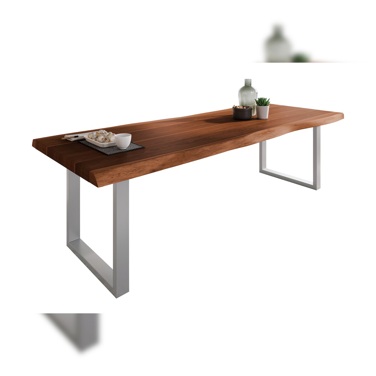 Esstisch Baumkante massiv Akazie Nussbaum 260 x 100 U-Gestell silber ATLAS