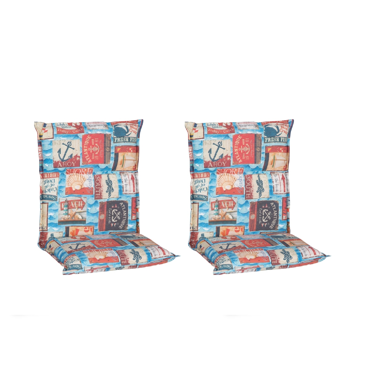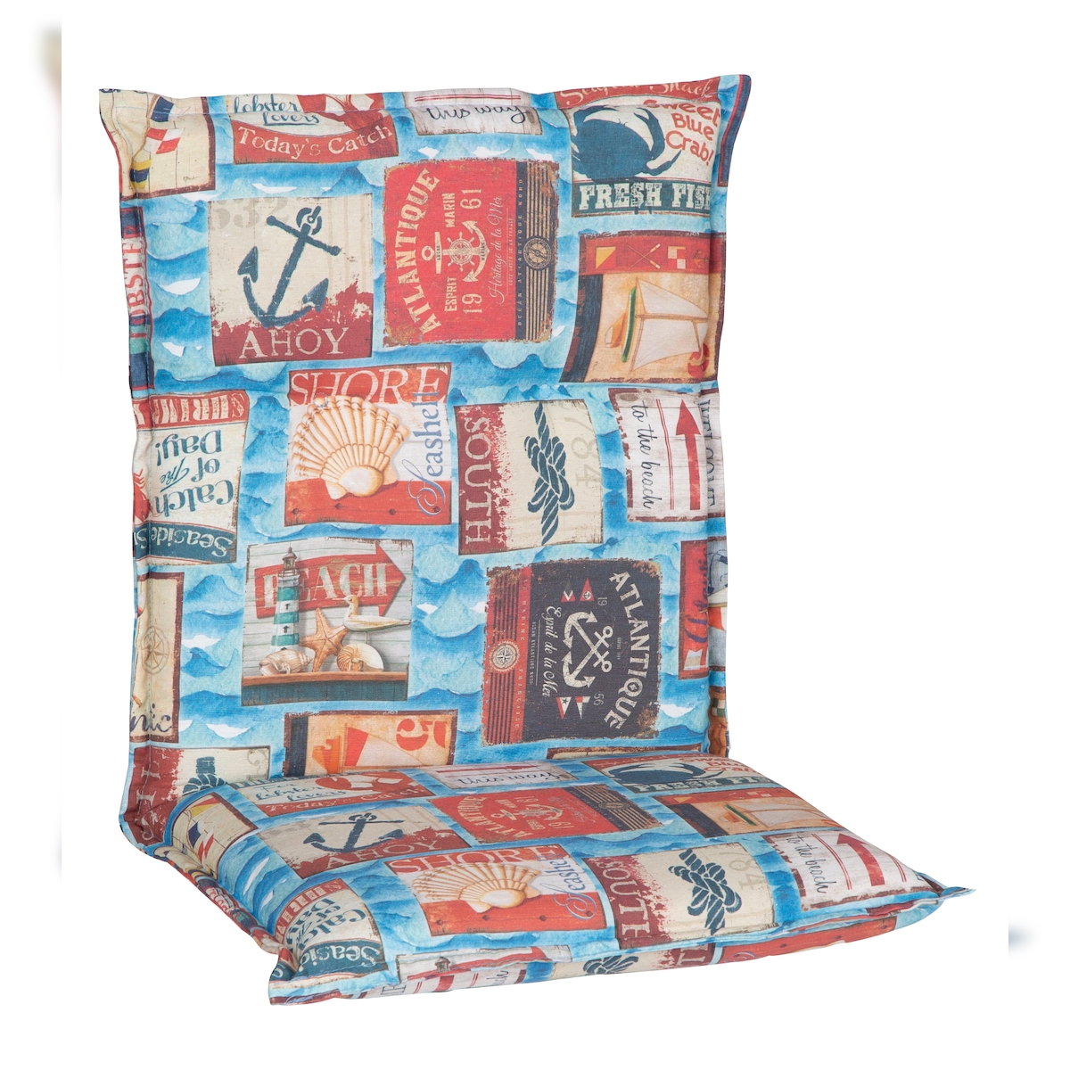 NYVI Niedriglehner Auflagen Piemont - Polsterauflage mit Halteband & Bindebändern Größe:8x Niedriglehnerauflage,Dessin:Maritimes Design BE135
