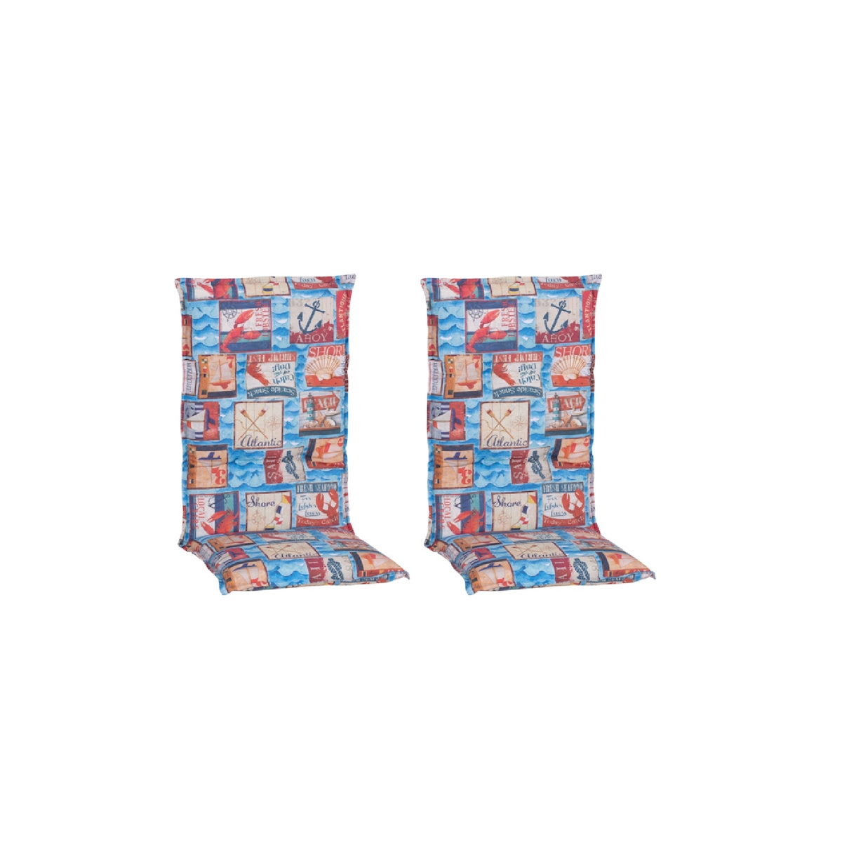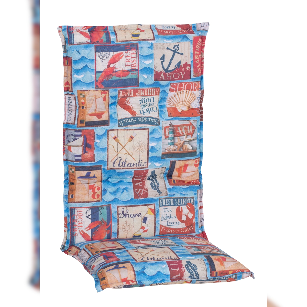 NYVI Hochlehnerauflagen Piemont - Polsterauflage mit Halteband & Bindebändern Größe:4x Hochlehnerauflage,Dessin:Maritimes Design BE135