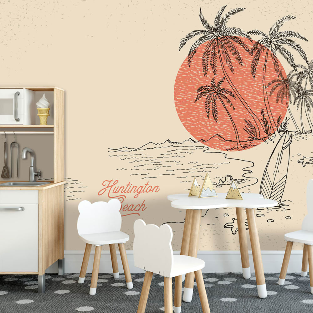 Carta da parati per bambini, bambino surf beach 364x270cm