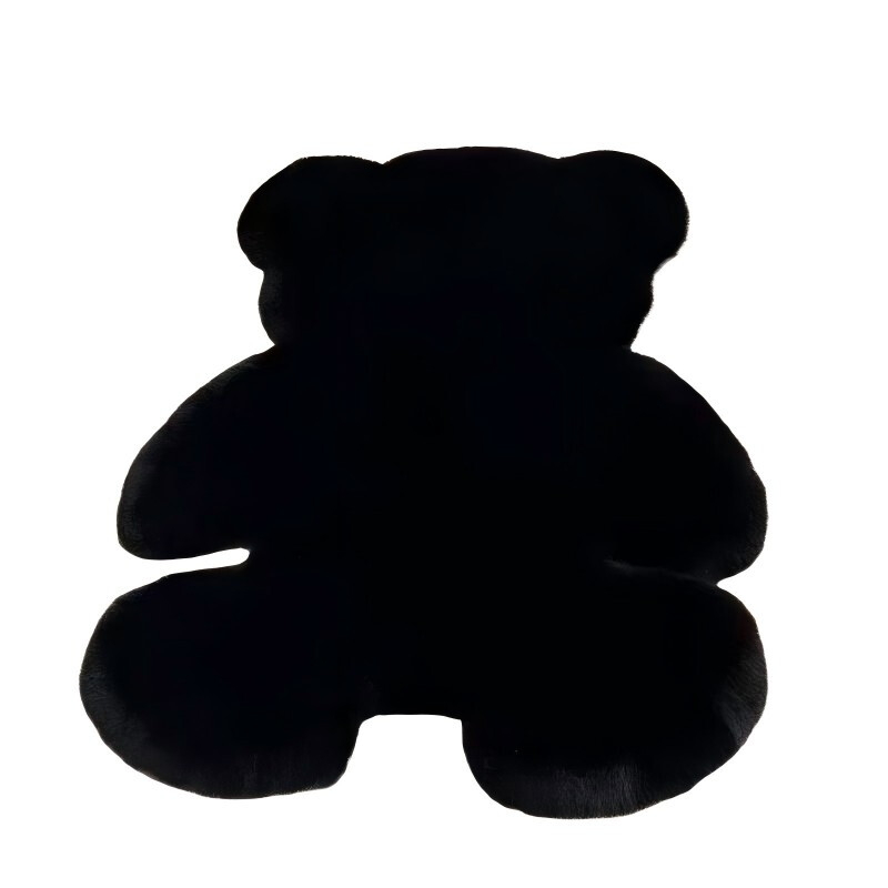 Soft Plush Faux Rabbit Fur Bear Rug, 70x90cm Non-Slip Shag Mat, Cute Black Accent Carpet for Kids Room, Nursery, Bedroom Decor