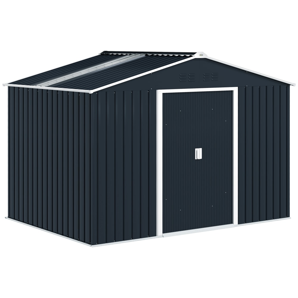 Outsunny Casetta porta Attrezzi con Porte Scorrevoli e 4 Prese d'Aria, in Acciaio e PP 196x236x208 cm, Grigio Scuro Aosom Italy