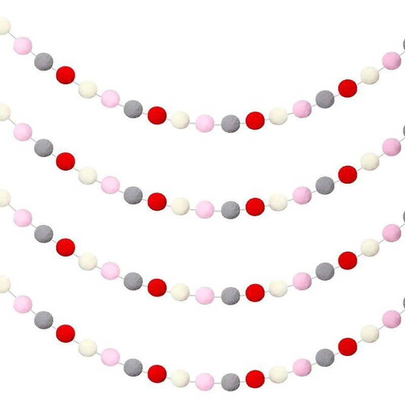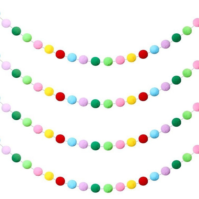 4 Pieces Wool Felt Ball Garland Colorful Pom Pom 6.5 ft Long 24 Ball Garland for Holiday Party Christmas Halloween Classroom Thanksgiving Xmas