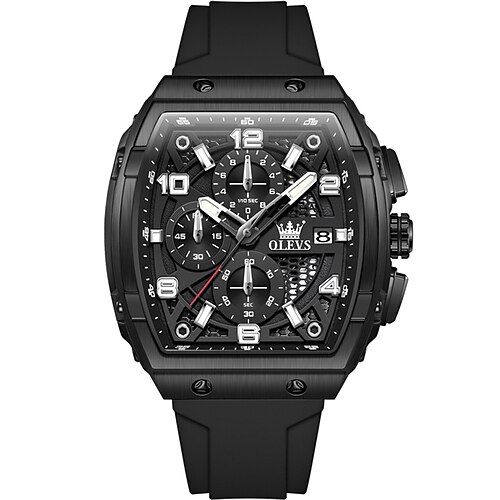 olevs 2976 orologio da uomo alla moda con cinturino in silicone tonneau cronografo orologio al quarzo impermeabile luminoso sportivo con data orologi