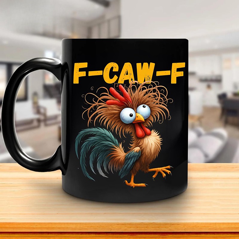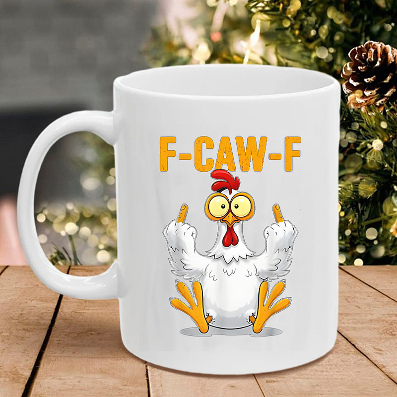 F-Caw-F Funny Chicken Mug Humorous Rooster Coffee Cup Gag Christmas Gift for Friends Family Ceramic Tea Mug Office Kitchen Birthday Christmas or Funny Gift Idea