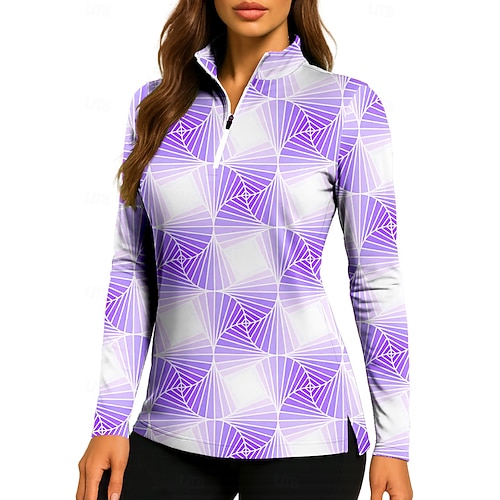 Per donna Geometrico Top Polo da golf Maglia da tennis Manica Lunga Stampato Zip a un quarto Pullover Protezione UV Elastico Traspirante Tennis Golf Pickleball Collo alla coreana Collo con zip