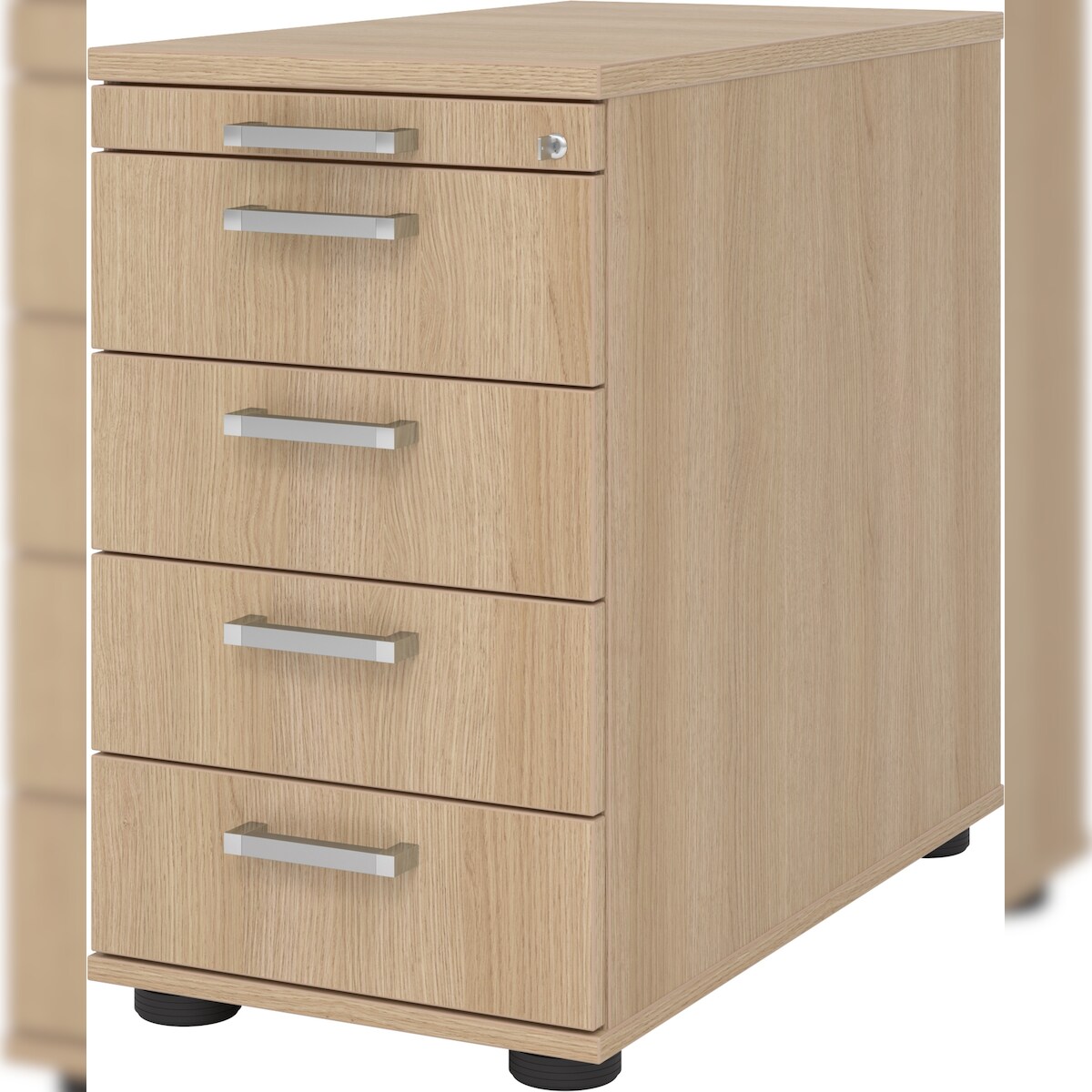 bümö Schreibtisch Schrank abschließbar, Schubladenschrank Holz in Eiche, Container mit Schubladen - Schubladen Schrank Büro, Schreibtisch Container
