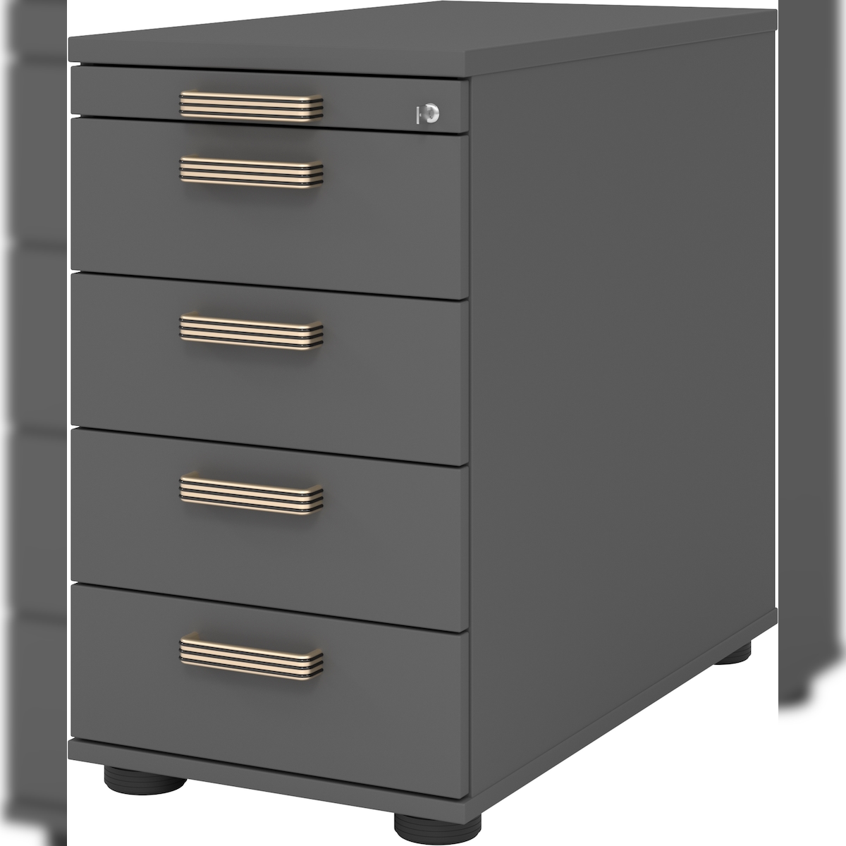 bümö Schreibtisch Schrank abschließbar, Schubladenschrank Holz in Eiche, Container mit Schubladen - Schubladen Schrank Büro, Schreibtisch Container