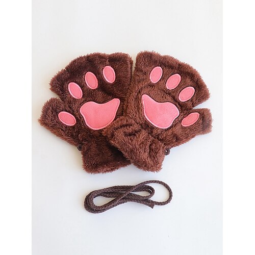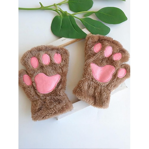 Plüschpfotenhandschuhe für Damen – süße pelzige Katzenkrallenfäustlinge, weiche, warme fingerlose Winterhandschuhe für Cosplay, Halloween und den Alltag