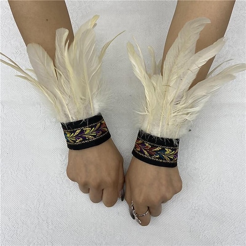 Accessori Samba Carnevale 2026 Rio Carnevale Polsini Piume Nere Donna con Nastro Ricamato Vintage Costume per Festival in Brasile