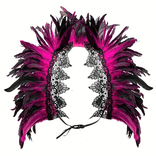 Accessori Samba Carnevale 2026 Rio Carnevale Mantello Stola Piume Rosse e Nere Donna con Choker in Pizzo Accessori Costume Vampiro Gotico Costume per Festival in Brasile