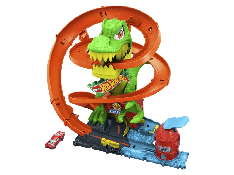 Hot Wheels City T-Rex Blaze Battle Playset & 1:64 Scale Die-Cast Car, Dinosaur Nemesis, Play vehicle track, 4 yr(s), Plastic, Multicolour