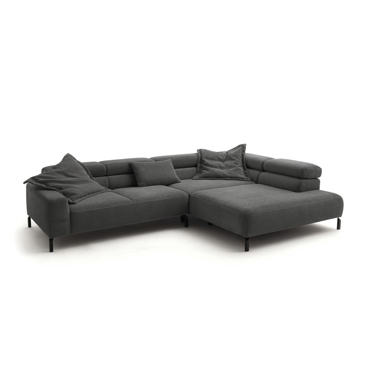 KAWOLA Sofa DELIA Ecksofa Feincord grau Recamiere rechts