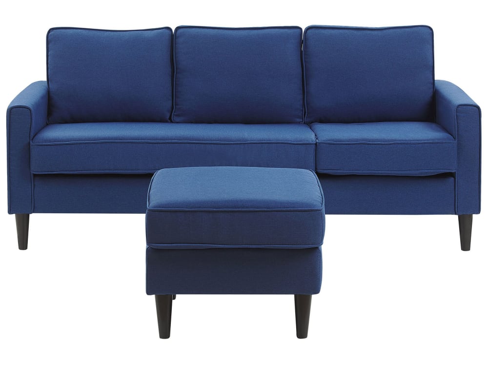 Divano 3 posti Tessuto Blu scuro con ottomana