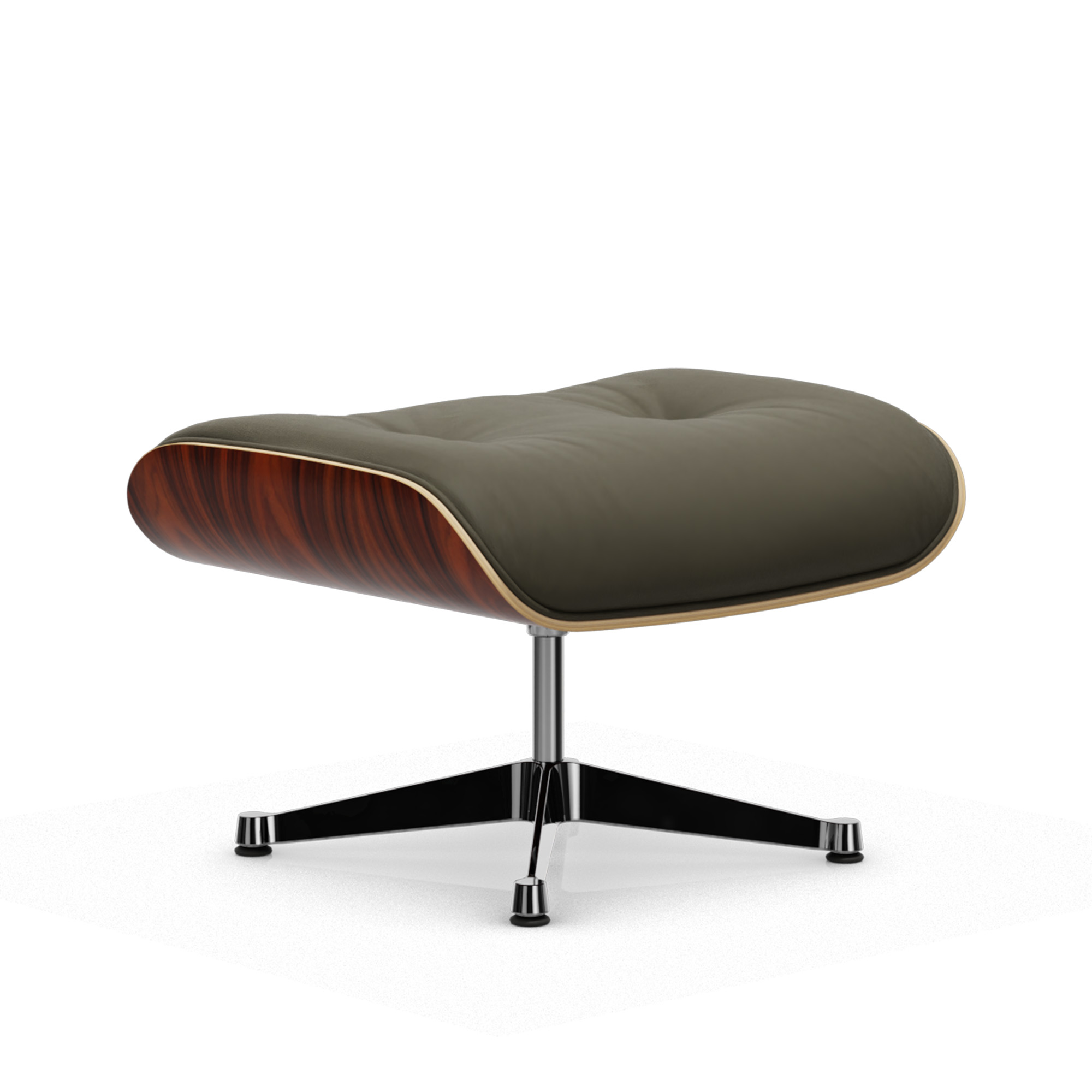 Vitra - Eames Lounge Ottoman Santos Palisander Leather Premium Khaki 58 Polished Aluminium - Fotpallar - Charles & Ray Eames - Läder/Metall/Trä