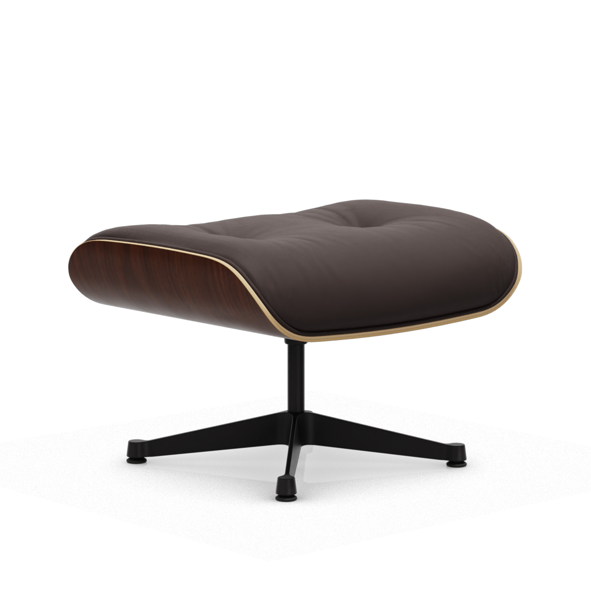 Vitra - Eames Lounge Ottoman Santos Palisander Leather Premium Nero 66 Polished Aluminium - Fotpallar - Charles & Ray Eames - Läder/Metall/Trä