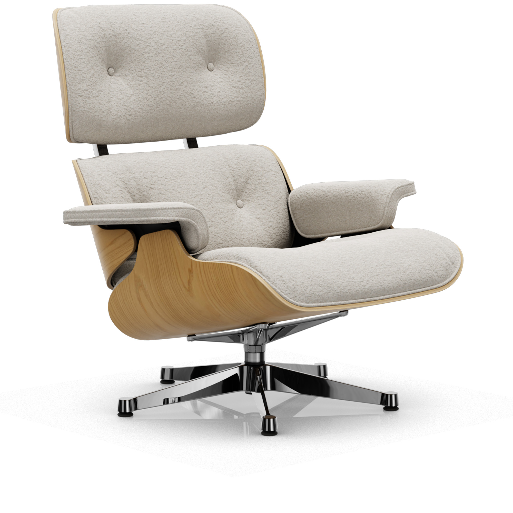 Vitra - Eames Lounge Chair Natural Chestnut Nubia Ivory Pearl 01 Polished Aluminium - Fåtöljer - Charles & Ray Eames - Läder/Metall/Trä