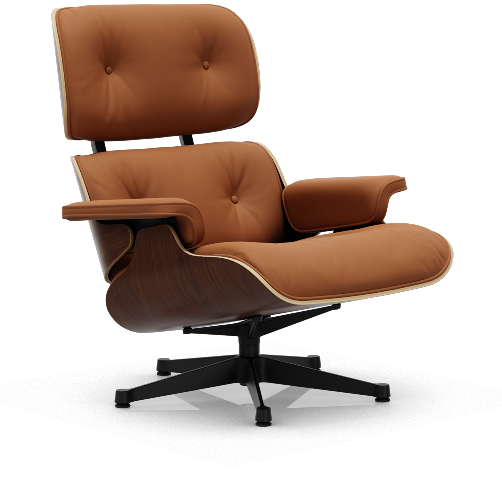 Vitra - Eames Lounge Chair Natural Chestnut Leather Premium Camel 75 Deep Black - Fåtöljer - Charles & Ray Eames - Läder/Metall/Trä