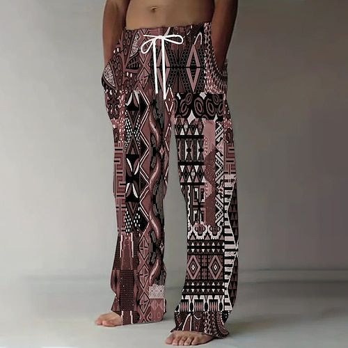 Herren Geometrisch Ethik / Afrikanisch Hose Baggy-Hosen Freizeithose Mittlere Taille Vintage-Retro Outdoor Urlaub Elastischer Kordelzug in der Taille Leinenähnliche Hose mit Taschen Sommer Frühling