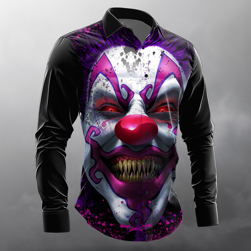 Keep Smiling by Tom Wood Men's Clown Smile Face Button Up Shirt Long Sleeve Designer Shirt Limited Artist Edition
