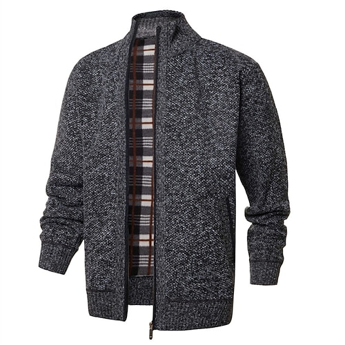 Per uomo Felpa Cardigan Maglione con Zip A Coste Maglia Top Regolari Lavorato a maglia Geometrico Collo Alto Neutro Moda Casuale Abbigliamento quotidiano Abbigliamento Autunno Inverno Blu Grigio