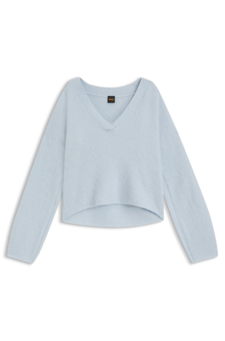 Boss ORANGE Strickpullover "Fiti Premium Damenmode" mit V-Ausschnitt light, pastel blau 452 M (38)