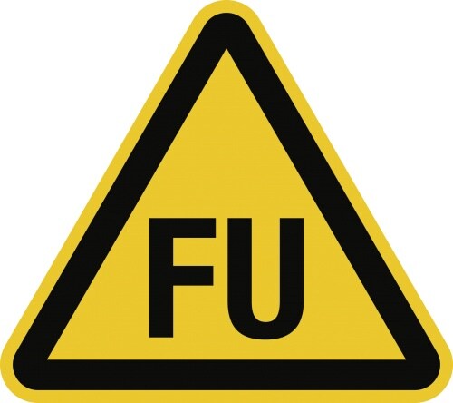 Dreifke® Aufkleber Warnung für Betriebsmittel mit Frequenzumrichter, Folie, 30 mm SL, 6 Stück/Bogen